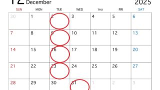 Hair&Make Azur志木店です。 2025年12月の定休日のお知らせをさせて頂きます。 12月の定休日は2日(火)、9日(火)、16日(火)、23日(火)、31日(水)になります。 15日(月)、30日(火)は営業しておりますので年...