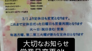 営業日変更 3/1〜