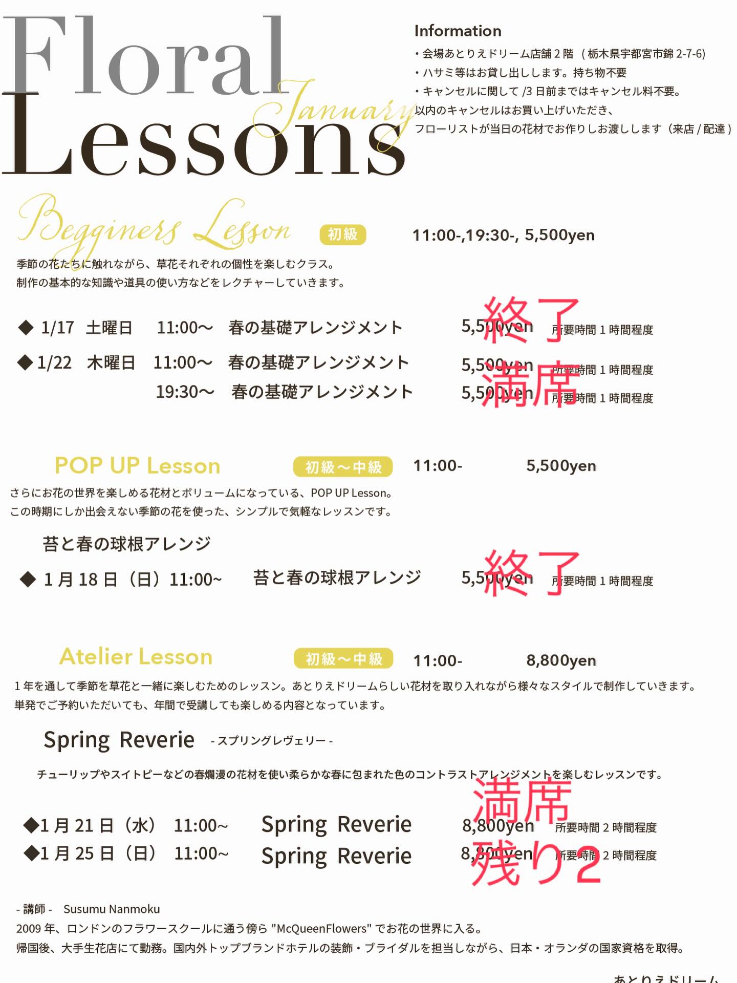 21日は満席の為25日日曜日残り2席ございますのでぜひぜひご参加くださいませ♪