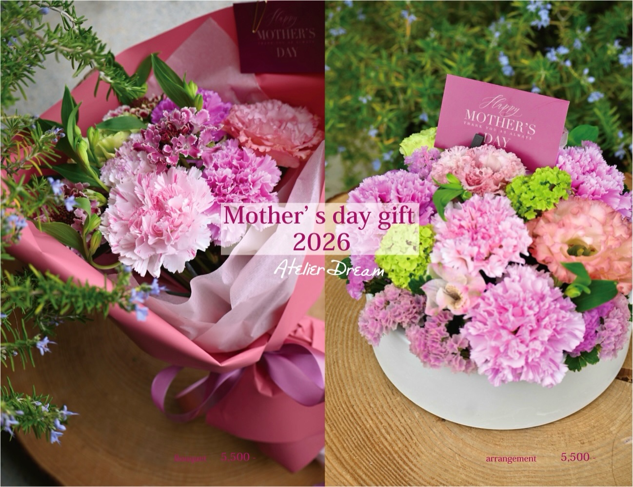 5/8以降のご予約に関しましては母の日カタログの商品からお選びいただく、又は当日の店頭商品よりお選びいただきますようお願い致します。