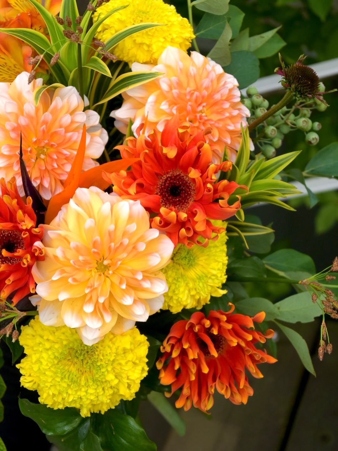 ころんとした咲き方のダリアをふんだんに使用して