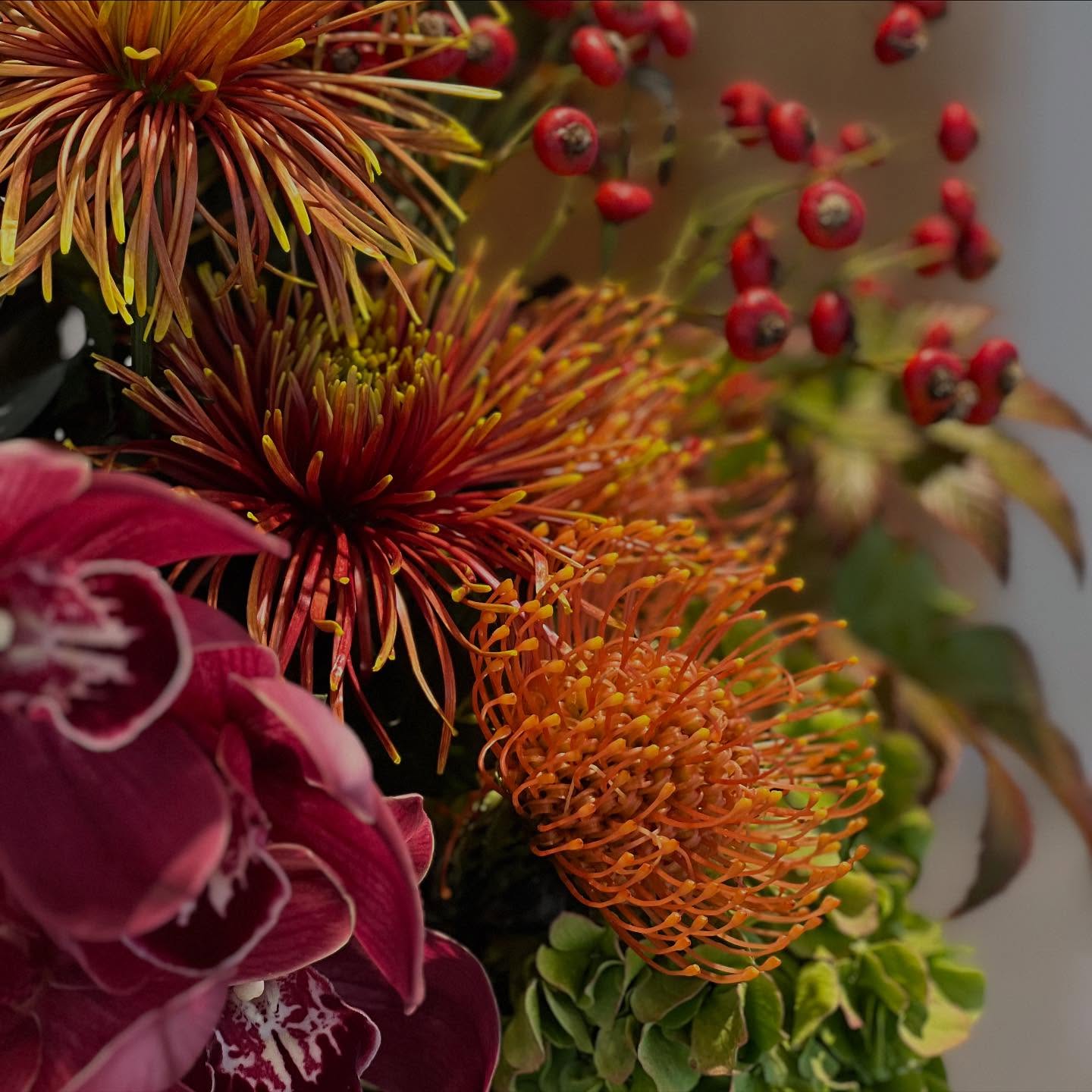 澄んだ空気に包まれるこの季節、街の色合いも少しずつ深まり、花たちも秋の装いに…..もう少しですね。 温もりを感じる色合いが、空間にやさしく季節を運んでくれます。 花は、移ろう季節をそっと知らせてくれる存在。 どうぞ、この時季ならではの表情をお楽しみください。