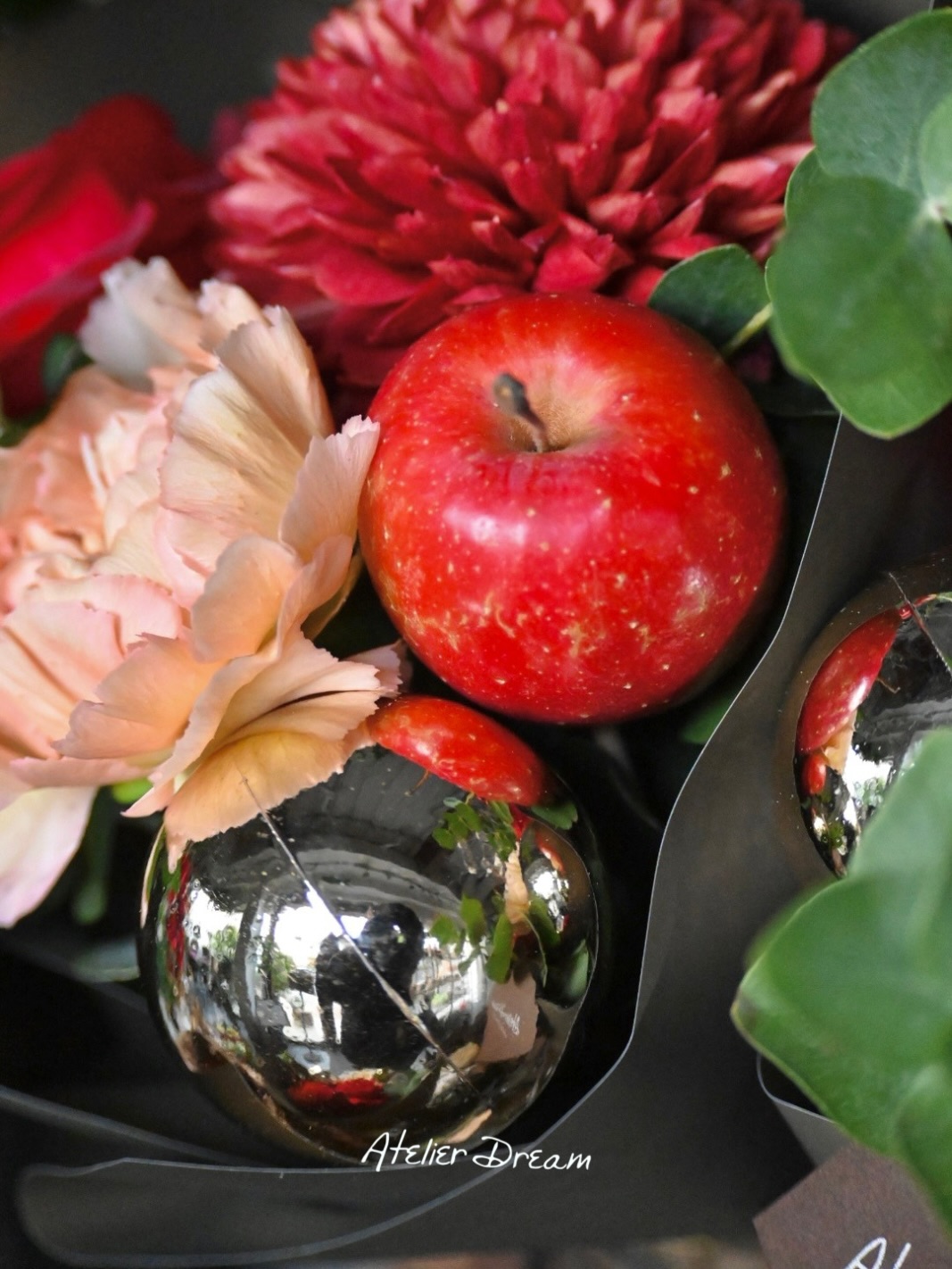 オーナメント入りのフェアブーケ 光に反射してキラキラと輝く姿がクリスマスをより身近に感じさせてくれます