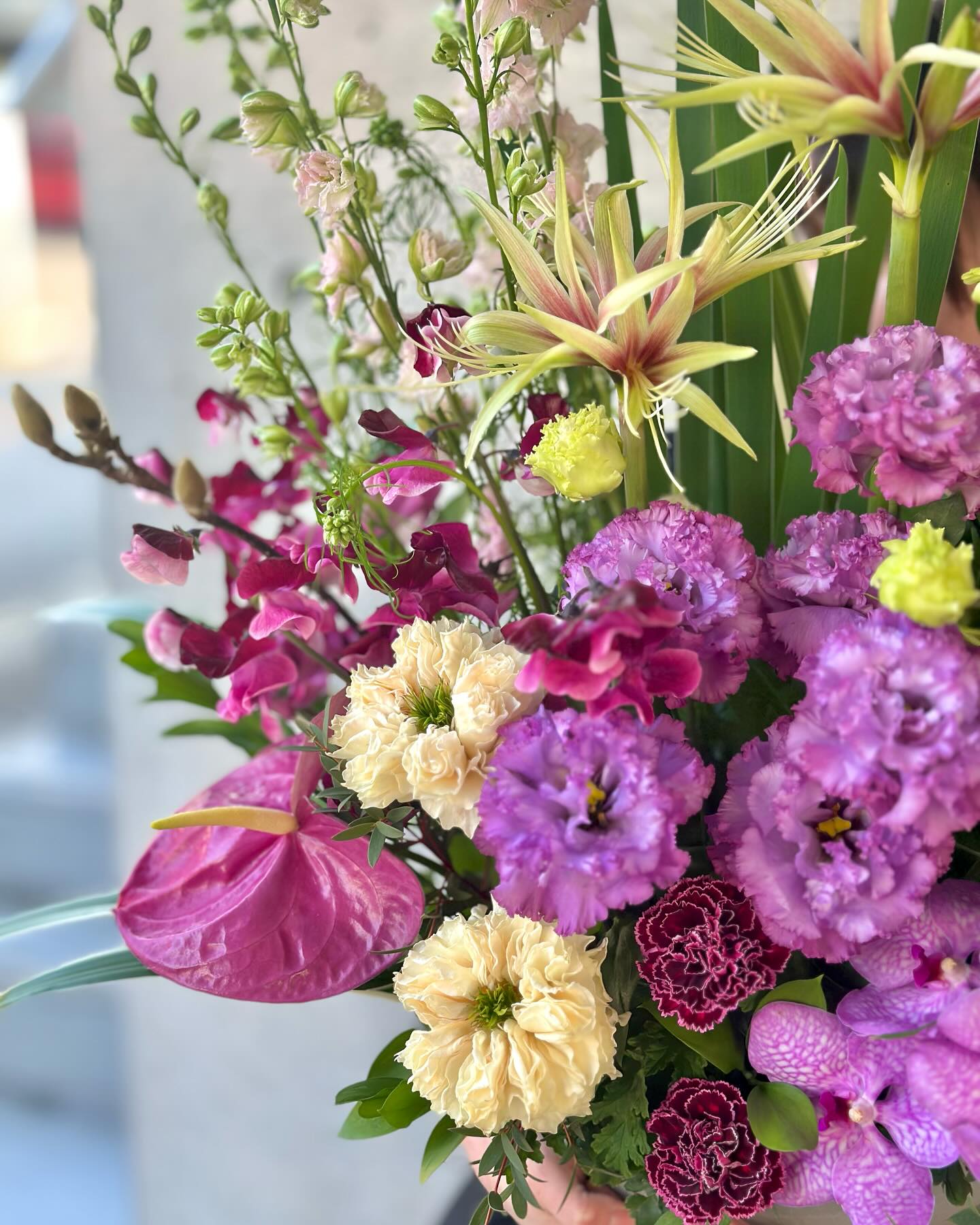 春のピンクムラサキアレンジメントです︎