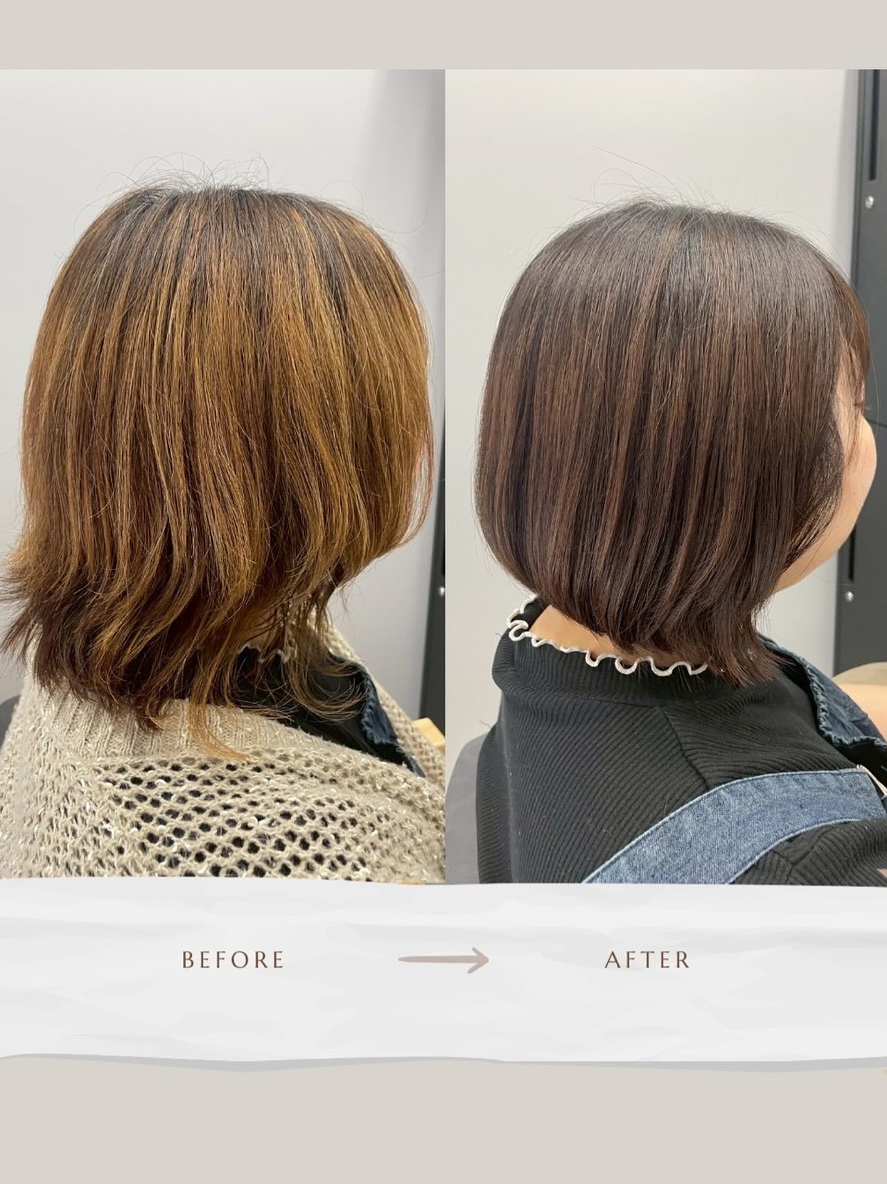 レイヤーの入ったスタイルから肩上前下りボブにスッキリカットさせて頂きました️