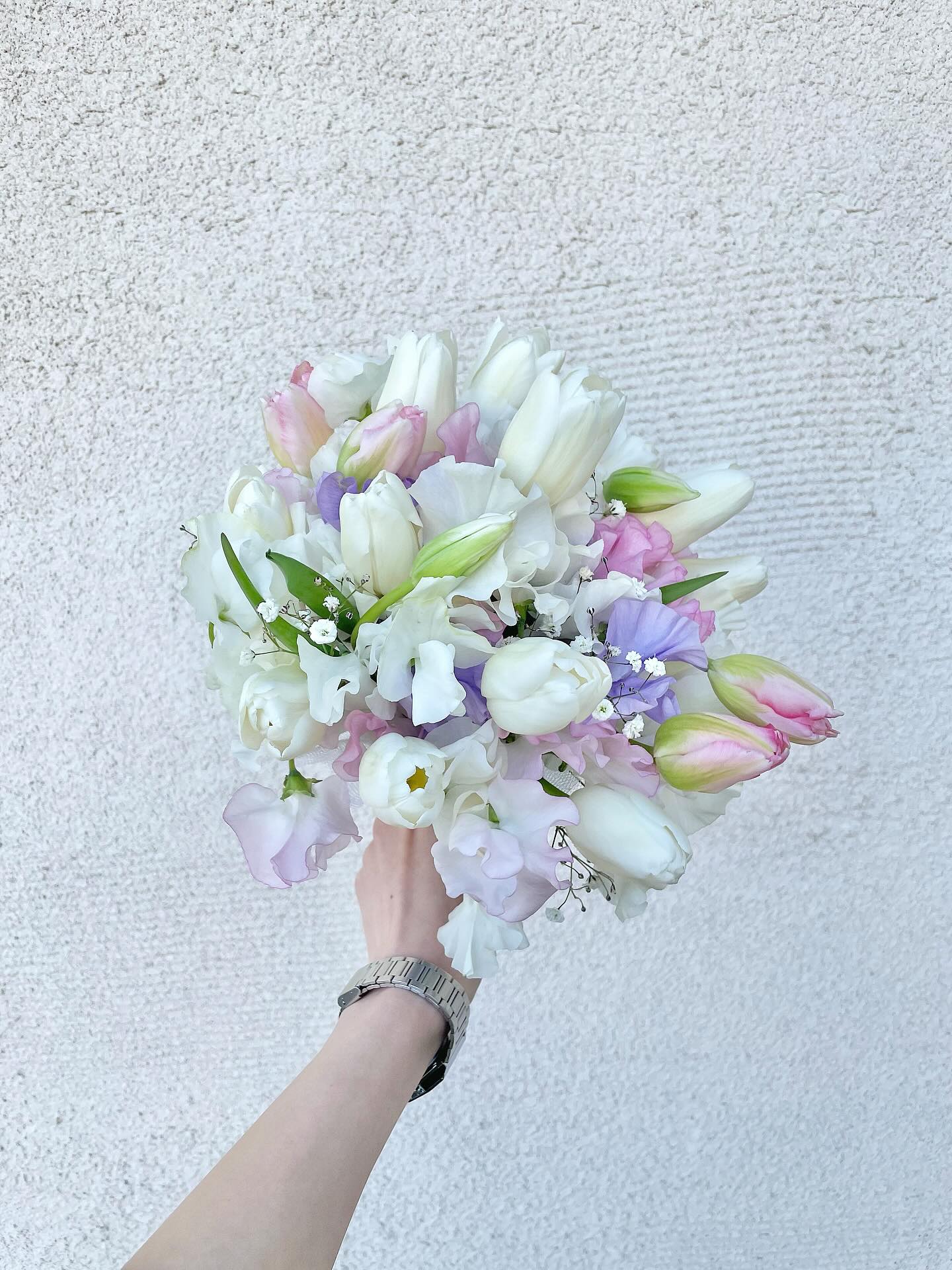 パステルカラーで可愛らしいブーケを